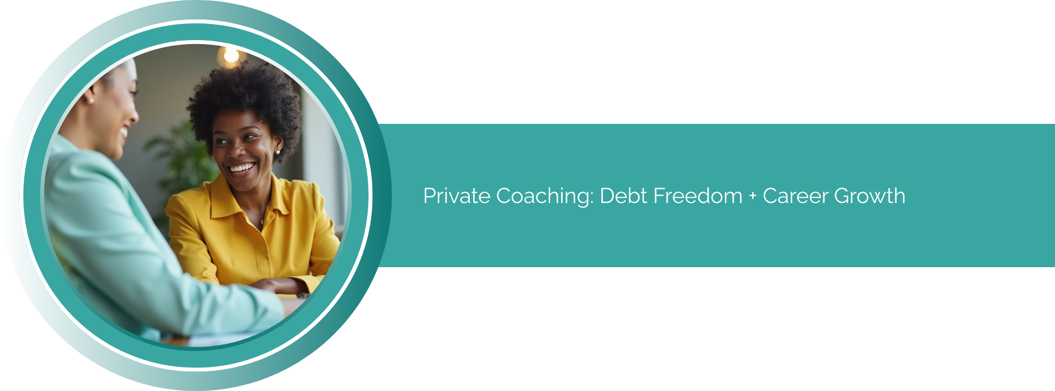 This transformational private coaching program is designed to help you take full control of your financial and professional life. Whether you’re buried in debt, feeling stuck in your career, or ready for a fresh start, this one-on-one experience gives you the accountability, strategy, and support to truly level up.